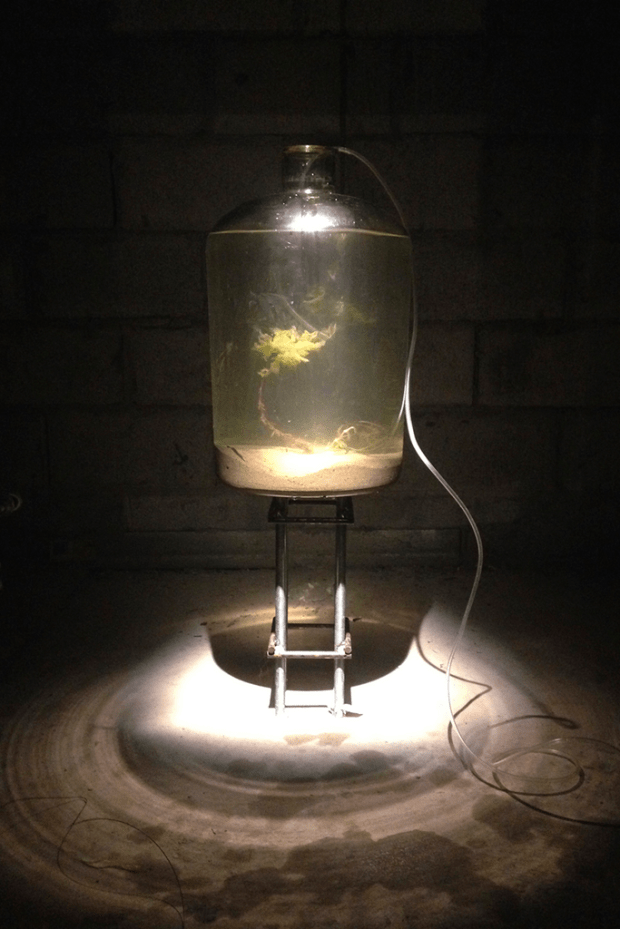 Sited in the cavernous MONA B1 storeroom crymeariver responds to the pipes, cables and conduits that comprise MONA’s service infrastructure. crymeariver reinterprets this matrix as a metaphor for the anthropogenic relationships that impact on the local Derwent river ecosystem, evolving a site of chemical, physical, social and political immersion.