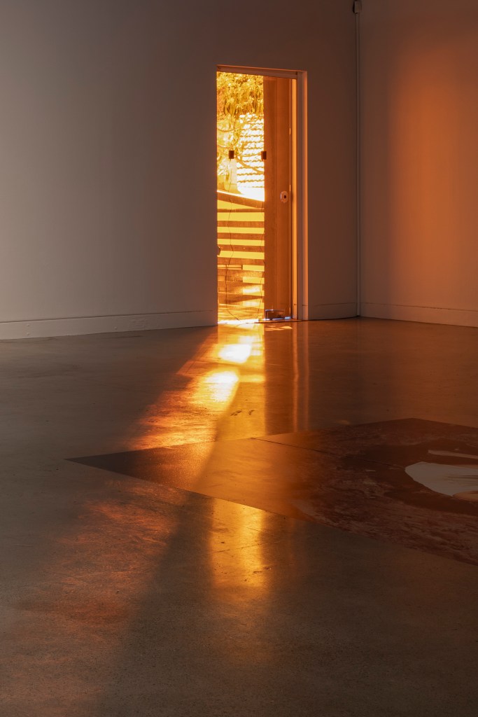 Created for the group exhibition EARTHEN, this variation of sampling (the slow seismogenic zone) covers the gallery’s windows and doors with earth-coloured transparent film and transmits vibrational data from local seismic activity through the glass via transducer speakers.