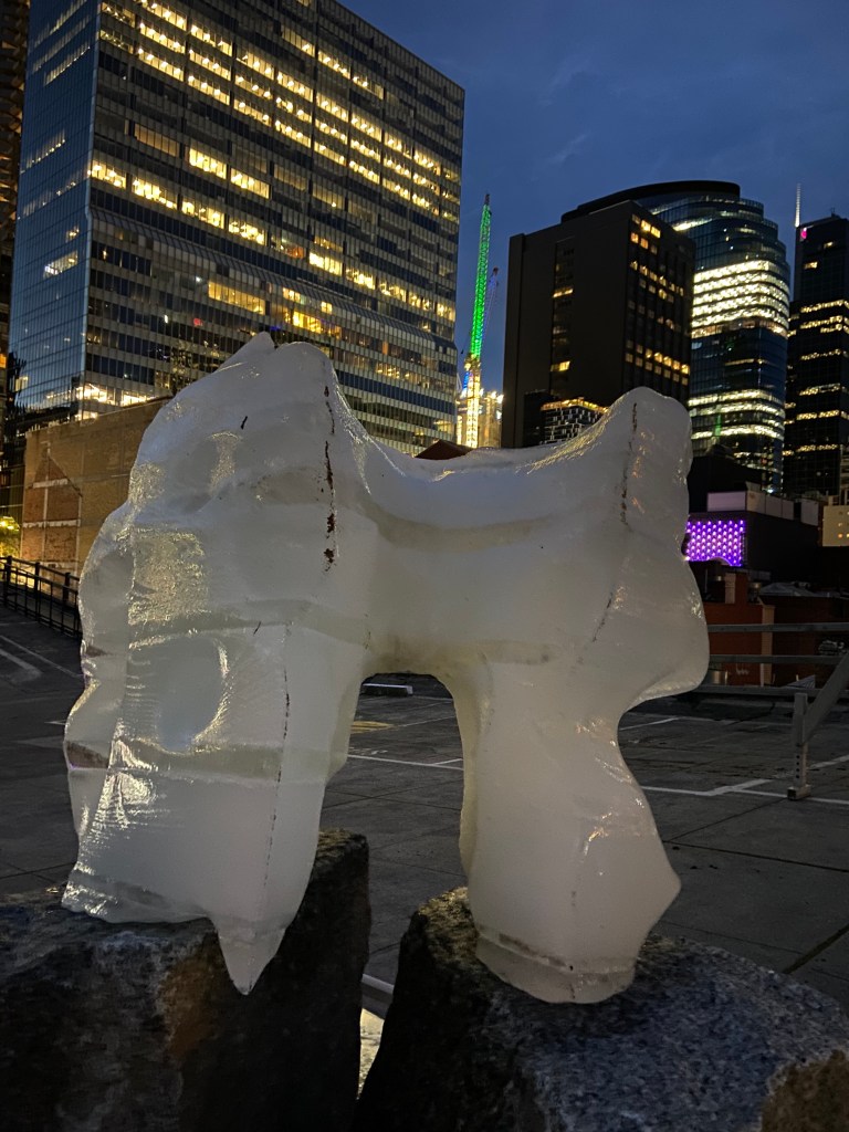 Materials: frozen inland lake water, frozen civic water, Harcourt granite, neon light, hydrophones, speakers