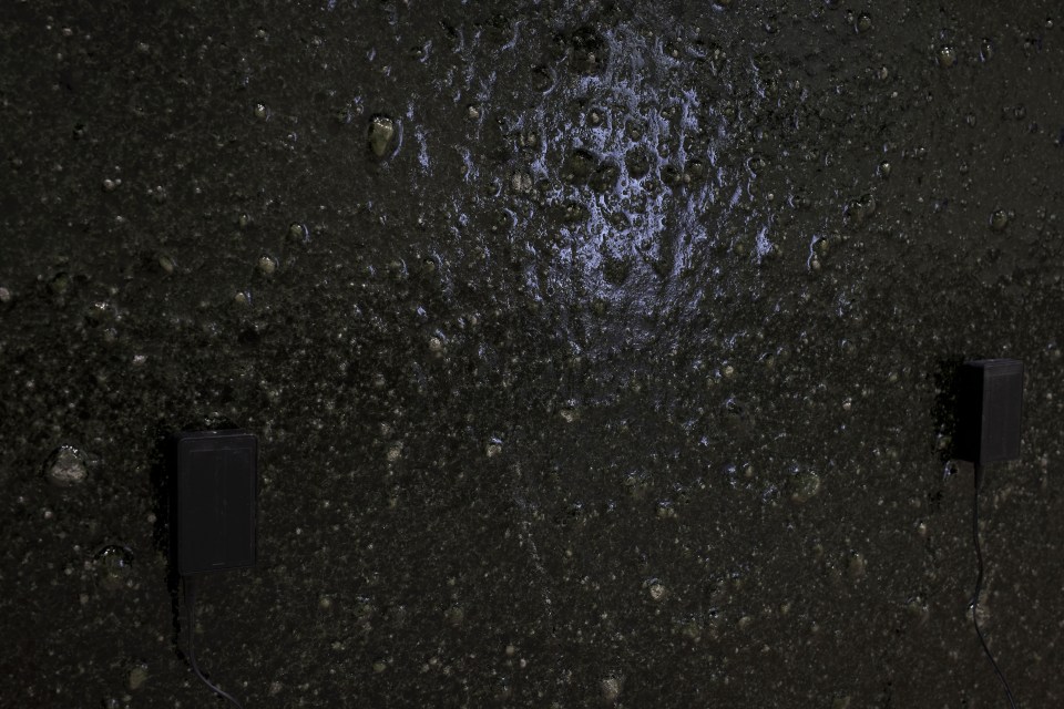 The multi-sensory experience implicates the gallery’s architecture and viewer in the subterranean infrasonic rumblings of the local terrain.