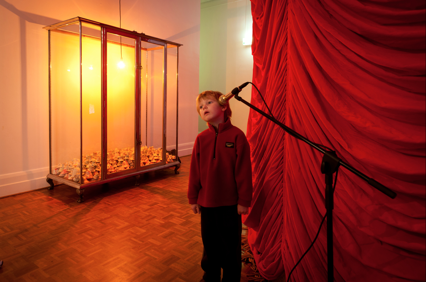 volcano lover evolved through interdisciplinary research with the departments of Earth Sciences and Chemistry at the University of Tasmania. Components of the project engaged primary school students and the general public in the fabrication of installation components. The video and sound components of the work were recorded with residents of Mt Yasur volcano.